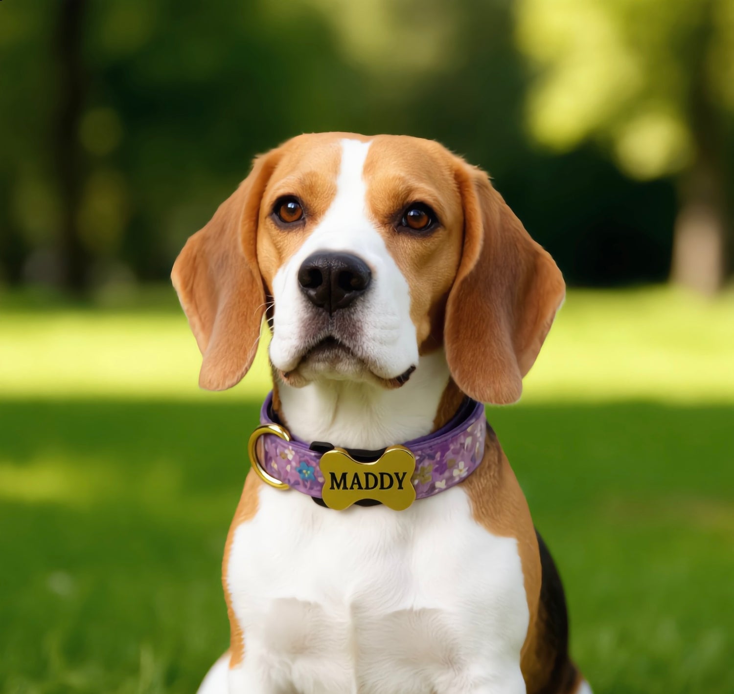 Premium Metal Buckle Collar - Bone Shape Purple with Flower XS